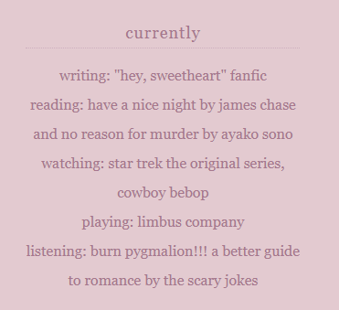 a week ago, i added a currently section on my journal i'll be constantly updating.